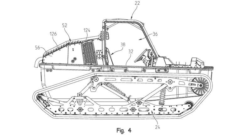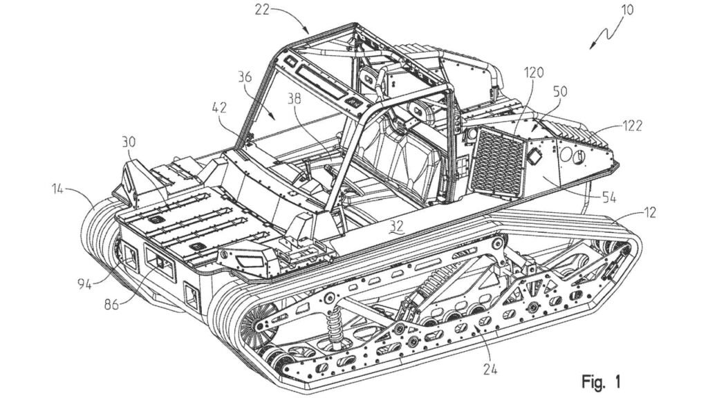 ويبدو أن هذا هو السبب وراء حصول  Polaris، الشركة المصنعة لمركبات Ranger وRZR UTV، على براءة اختراع لدبابة  UTV، أو كما تُطلق عليها الشركة “مركبة مجنزرة لجميع التضاريس”.
