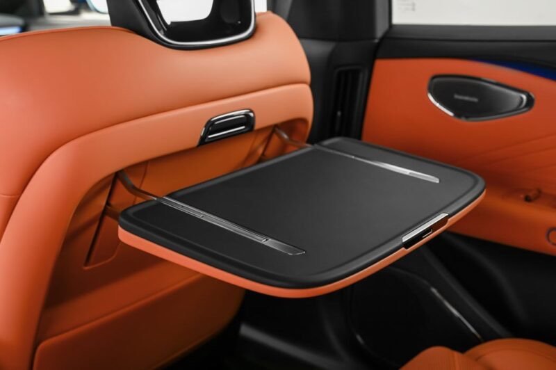 كما تضم السيارة ثلاجة مدمجة بسعة 5.7 لتر تدعم التبريد بدرجات حرارة من -6℃ إلى 10℃، والتسخين بدرجات حرارة من 35℃ إلى 50℃، بالإضافة إلى طاولة صغيرة خلف مقعد السائق تتحمل وزنًا يصل إلى 15 كجم.
