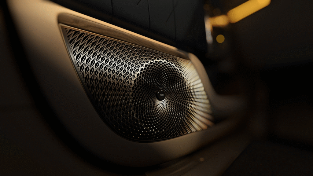 النظام الصوتي المدمج في Zeekr 9X يُعد إنجازًا هندسيًا غير مسبوق، حيث يضم 32 مكبر صوت و8 وحدات اهتزاز مدمجة بالمقاعد موزعة بدقة لتقديم تجربة صوتية مميزة. ويعتمد النظام على 40 قناة مستقلة مع قدرة قصوى تصل إلى 3868 واط، وهو ما تصفه زيكر بأنه رقم قياسي عالمي جديد لأعلى قوة صوتية على الإطلاق داخل سيارة.