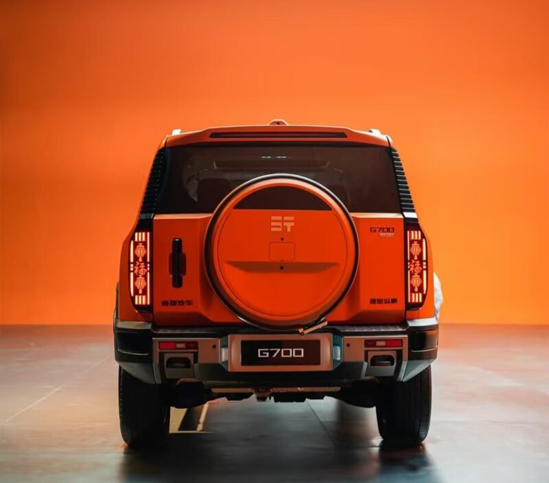 تأتي جيتور Zongheng G700 بلغة تصميم صندوقية تقليدية مستوحاة من سيارات الطرق الوعرة الخالصة، مع الحفاظ على الطابع الكلاسيكي من خلال الإطار الاحتياطي الخارجي المثبّت في الخلف، إلى جانب خطافات سحب أمامية وخلفية تبرز قدراتها الميكانيكية. وتضيف المصابيح الخلفية الرقمية بعدًا تكنولوجيًا جديدًا، حيث يمكن برمجتها لعرض أشكال وكلمات مختلفة.
