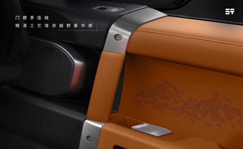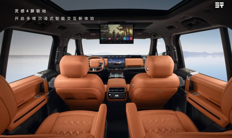 من الداخل، يعكس التصميم شخصية السيارة القوية من خلال الأبواب الصندوقية وفتحات التهوية المربعة، إلا أن الفخامة واضحة في التجهيزات الرقمية والتقنيات الحديثة. حيث تضم المقصورة شاشة مركزية للتحكم بحجم 15.6 بوصة، بالإضافة إلى شاشة ضخمة بقياس 35.4 بوصة خلف لوحة العدادات، مع عجلة قيادة ثلاثية الأذرع بتصميم مسطح القاعدة.