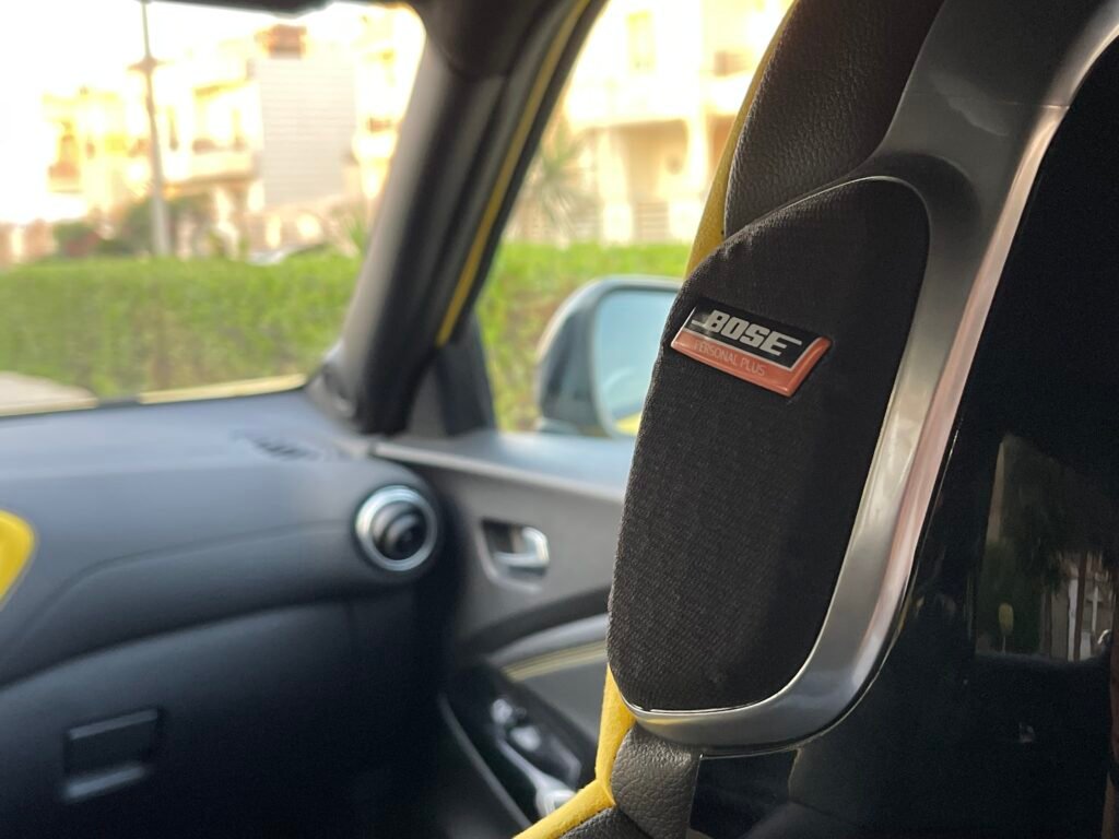 بمجرد فتح الباب والدخول إلى المقصورة شعرنا بأننا نستعد لقيادة سيارة رياضية بإمتياز، المقاعد المغطاة بـ Alcantara مع خياطة صفراء عززت الطابع الرياضي وتوفر دعماً جانبياً ممتازاً خصوصاً عند المنعطفات السريعة. عجلة القيادة مكسوة بجلد ناعم وتعطي إحساساً رياضياً عند الإمساك بها. ضبطنا المقعد يدوياً والتي كنا نتمني أن تأتي بمقاعد كهربائية.