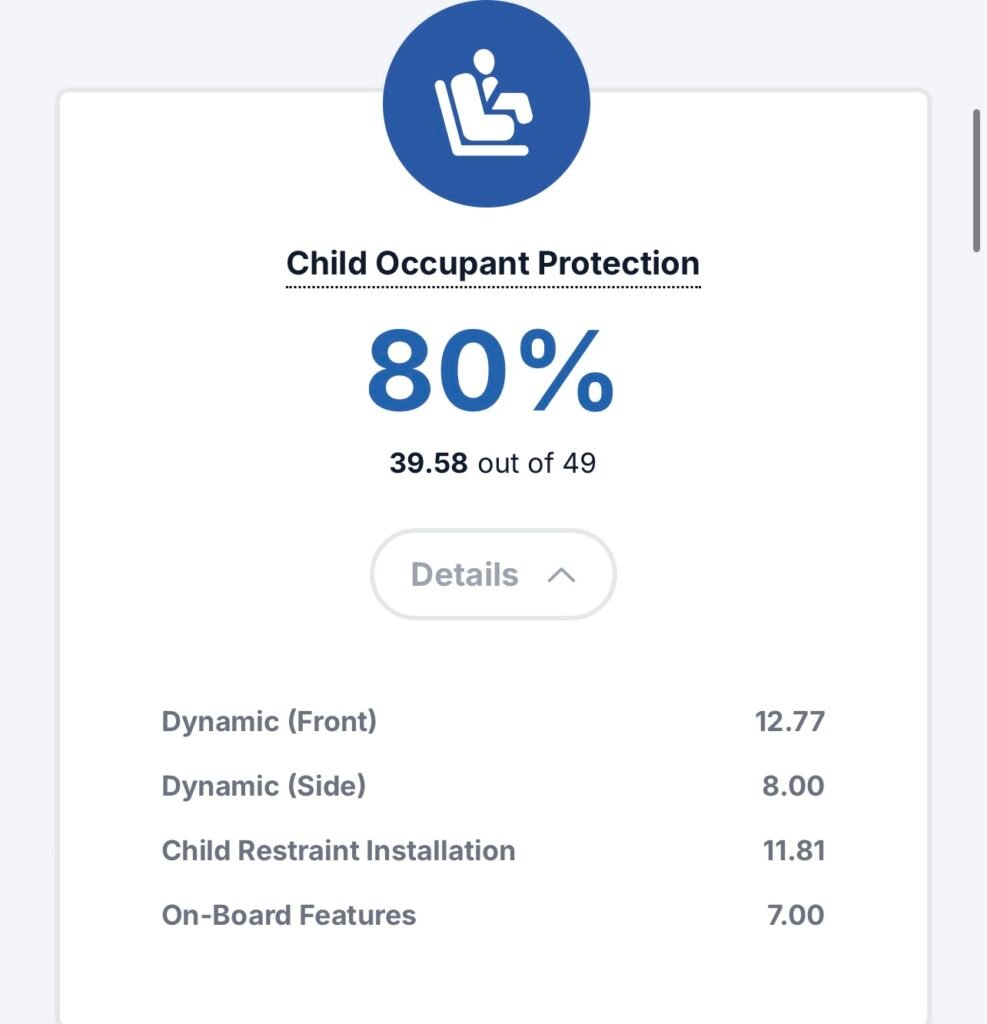 سجلت كيا K4 نسبة 80% في حماية الركاب الأطفال بما يعادل 39.58 نقطة من أصل 49. في اختبار الاصطدام الأمامي الجزئي، أظهرت الدمى الممثلة للأطفال بعمر 10 سنوات حماية “مقبولة” للرقبة و”ضئيلة” للصدر، بينما سجلت دمى الأطفال بعمر 6 سنوات نتائج “مقبولة” للرأس و”ضئيلة” للرقبة، مع بقاء بقية الأعضاء الحيوية في مستوى الحماية “الجيد”. أما في اختبار الاصطدام الجانبي، فقد حققت السيارة أعلى تقييم ممكن بحماية “جيدة” لجميع الأعضاء الحرجة للأطفال. السيارة مزودة بمقاعد خلفية مزودة بنظام ISOFix في المقاعد الجانبية الخلفية ونقاط تثبيت علوية لجميع المقاعد الخلفية، مما يتيح تثبيت غالبية مقاعد الأطفال المتوفرة. كما زودت السيارة بنظام كشف وجود طفل في المقاعد الخلفية Child Presence Detection، وهو نظام يصدر تنبيهًا عند احتمال نسيان طفل في الداخل، لكنه لا يُحتسب ضمن نقاط ANCAP لمعايير 2025.