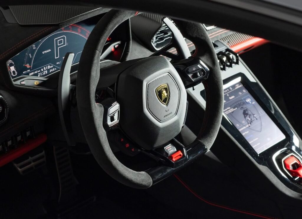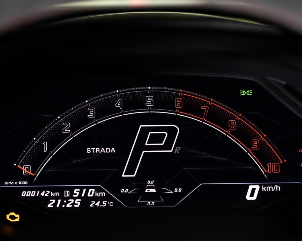 العداد يشير إلى مسافة لا تتجاوز 142 كيلومترًا فقط، ما يجعلها شبه جديدة. كما تأتي السيارة مرفقة بجميع الكتب والكتيبات الأصلية الخاصة بللامبورجيني، إضافة إلى سجل الصيانة الذي يوضح أن آخر صيانة أجريت لها في يوليو 2025 لدى الوكيل في زيورخ.