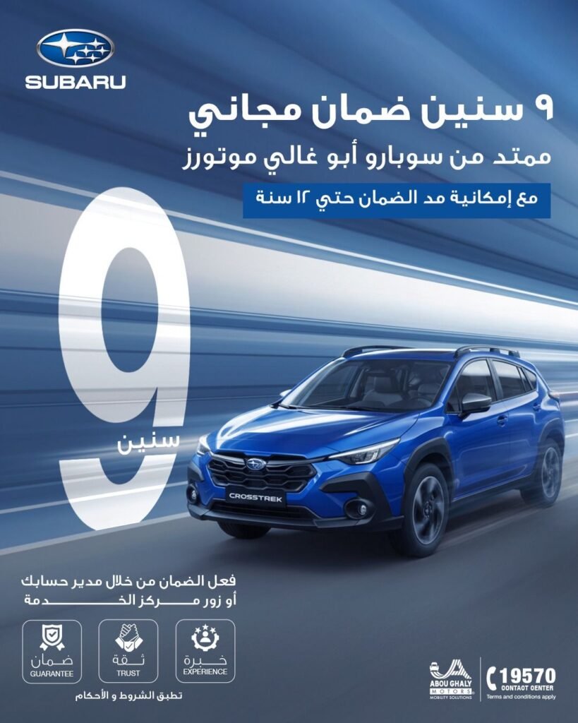 أعلنت مجموعة أبو غالي موتورز Abou Ghaly Motors، الوكيل الحصري لسيارات سوبارو Subaru في مصر، عن تقديم برنامج ضمان جديد يُعد الأطول في سوق السيارات المصري. ويتيح البرنامج لعملاء سوبارو الحصول على ضمان ممتد يصل إلى 12 عامًا، تتضمن 9 سنوات مجانية بالكامل.