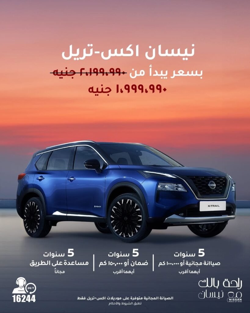 أبرز التخفيضات جاءت على السيارة العائلية متعددة الاستخدامات نيسان إكس تريل Nissan X-Trail، حيث حصلت على أقوى خفض في الأسعار بلغ 200 ألف جنيه في جميع فئاتها، لتتراجع فئة Acenta Plus من 2 مليون و200 ألف جنيه إلى 2 مليون جنيه، بينما انخفضت فئة N-Trek من 2 مليون و280 ألف جنيه إلى 2 مليون و80 ألف جنيه، أما الفئة الأعلى تجهيزًا Tekna فتراجعت من 2 مليون و450 ألف جنيه إلى 2 مليون و300 ألف جنيه.