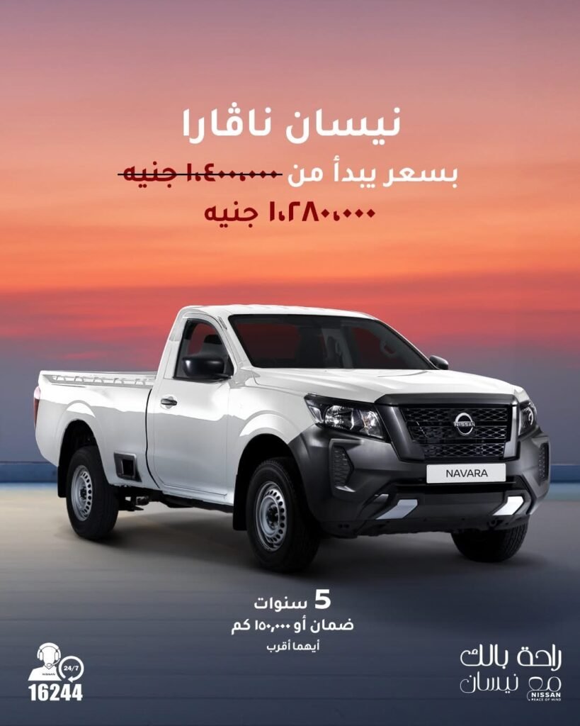 أعلنت شركة نيسان إيجيبت Nissan Egypt عن حملة تخفيضات كبيرة على أسعار سياراتها موديل 2026 في السوق المصري خلال شهر أكتوبر 2025، حيث وصلت التخفيضات في بعض الطرازات إلى 200 ألف جنيه.