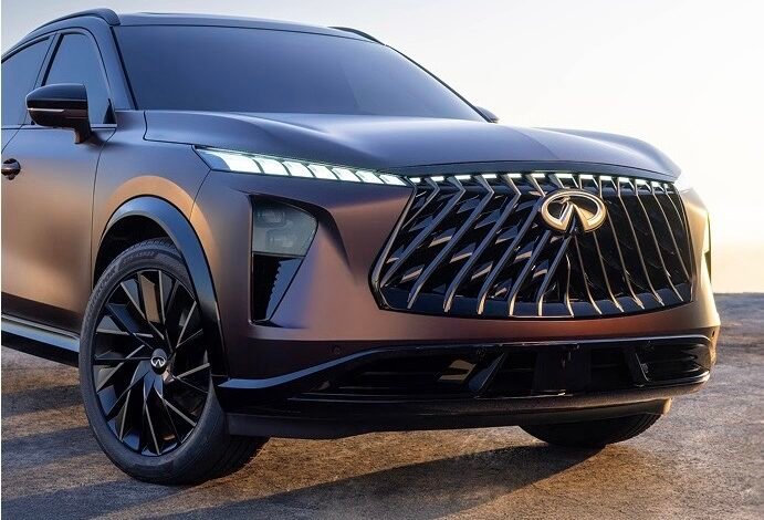 في المقدمة، جاءت الشبكة الأمامية بتصميم مستوحى من أعواد الخيزران اليابانية التي تنحني تحت تأثير الرياح، وهو تصميم يعكس ارتباط العلامة بجذورها الثقافية. هذه الشبكة تحتضن شعار إنفينيتي ثلاثي الأبعاد الذي يمنح الطراز شخصية مميزة وحضورًا بارزًا. كما تبرز المصابيح الأمامية بتقنية LED ذات تصميم “مفاتيح البيانو الرقمية” والتي تقدم تأثيرات ضوئية متحركة تضيف طابعًا عصريًا متطورًا. أما في الخلف، فجاءت المصابيح مستوحاة من الطائرات النفاثة، مع تصميم ثلاثي الأبعاد يوحي بالسرعة والعمق، ليجمع بين الطابع الرياضي واللمسة الفنية.
