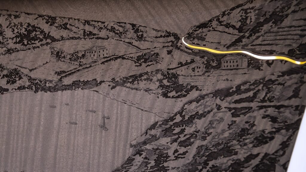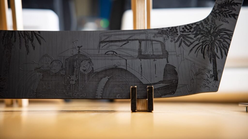 أما تقنية الطباعة بالحبر ثلاثي الأبعاد، فقد أتاحت إضافة طبقات دقيقة من الحبر على الأسطح الخشبية لتحقيق مستوى أعلى من الوضوح والدقة، بينما أضافت تقنية الترصيع ثلاثي الأبعاد بُعدًا جديدًا، إذ تم رفع بعض عناصر التصميم لتبدو وكأنها تنبض بالحياة داخل المقصورة.