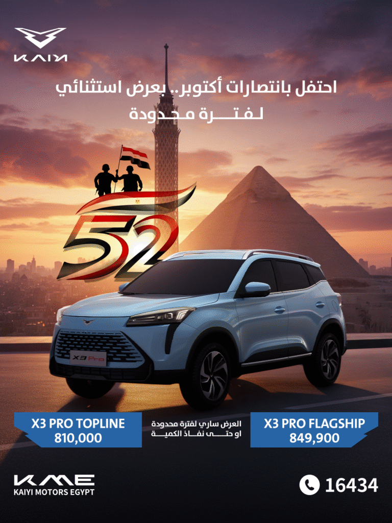 كشفت شركة كايي موتور إيجيبت Kaiyi Motor Egypt، الوكيل الرسمي لعلامة كايي KAIYI الصينية في مصر، عن تقديم عرض خاص على السيارة الكروس أوفر كايي X3 Pro الجديدة كليًا، وذلك لفترة زمنية محدودة.