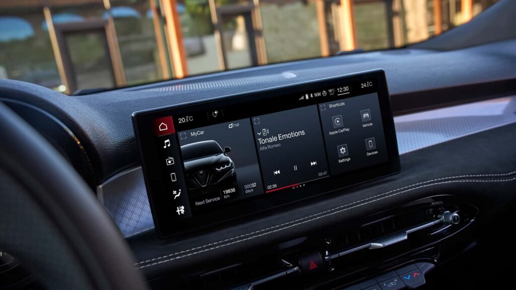 أما الفئة Tonale Veloce فتتميز بتجهيزات مختلفة تركز على الأداء أكثر من الفخامة، وتشمل مقاعد جلدية فاخرة، ونظام تعليق ثنائي الوضعية Dual-Mode Suspension يمكن السائق من اختيار نمط القيادة المفضل بين الراحة والرياضية، إلى جانب مقابض تبديل سرعات مصنوعة من الألومنيوم خلف عجلة القيادة، ومكابح Brembo باللون الأحمر.