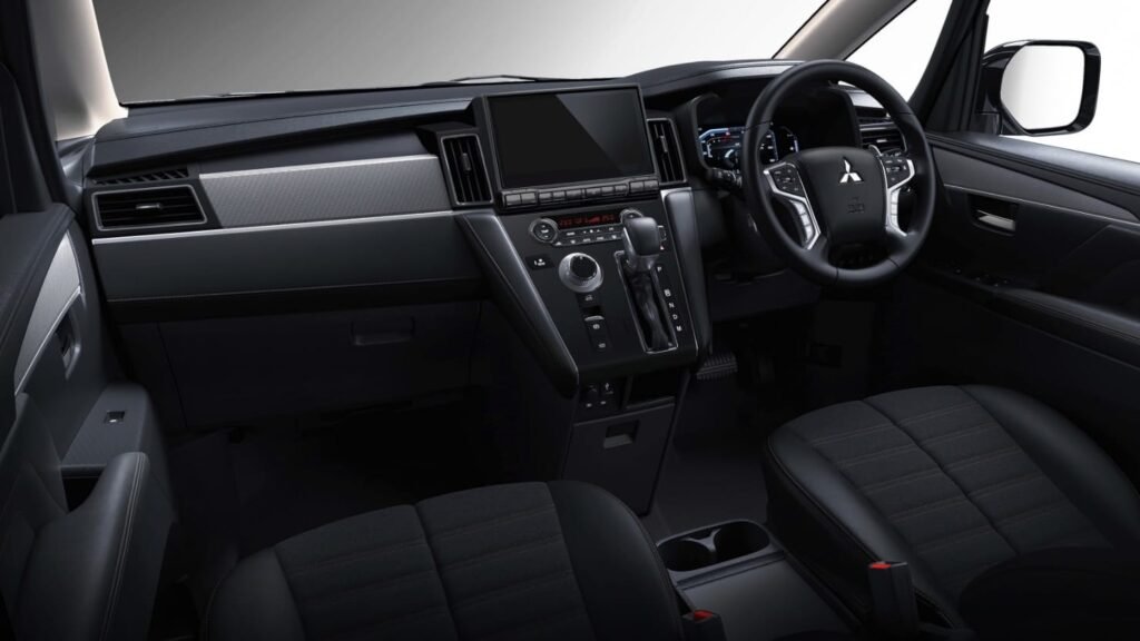داخل المقصورة، جاءت ميتسوبيشي ديليكا D:5 الجديدة بتحديثات واضحة ترفع من مستوى الجودة، حيث تم تزويدها بشاشة عدادات رقمية بالكامل. أما المقاعد، فقد تم تصميمها بخليط من الجلد والشمواه المقاوم للماء، كما أضافت ميتسوبيشي خياطة باللون الكاكي تضيف لمسة تصميمية جديدة داخل المقصورة، مع تزويد السيارة بمنافذ USB-C حديثة تتيح شحن الأجهزة الذكية بسرعة.