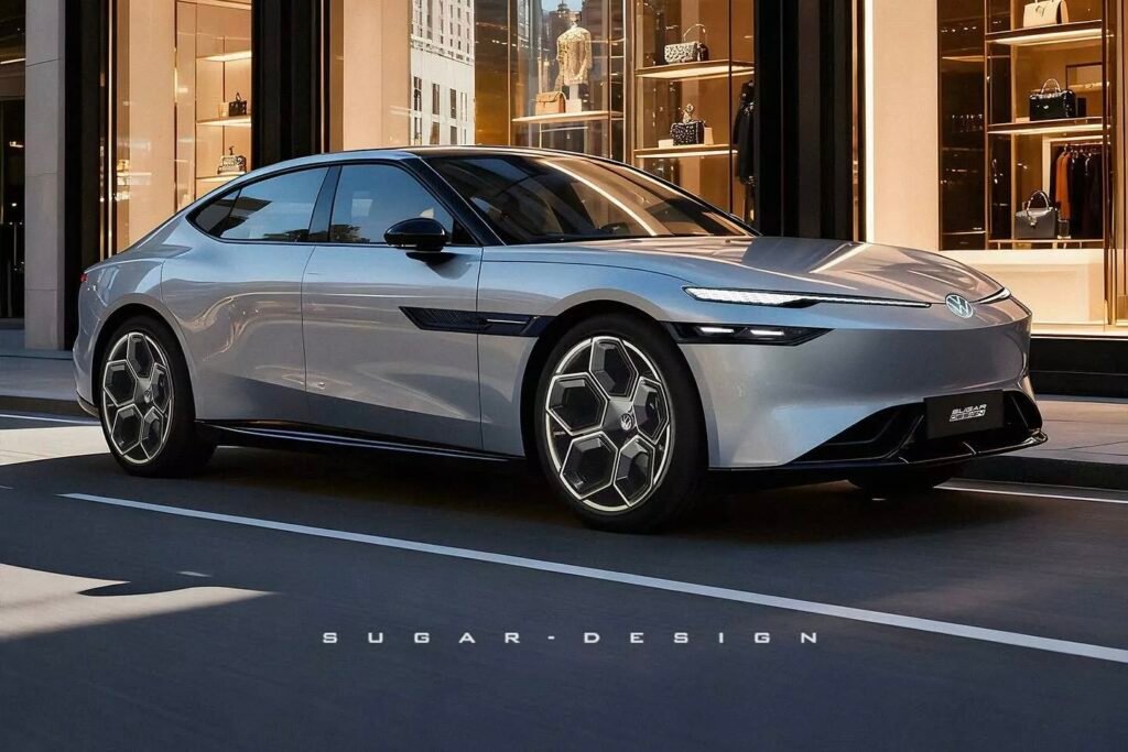 وقد تخيل المصمم الرقمي “شوجر ديزاين” Sugar Design المظهر الخارجي للسيارة بناءً على الصور المسربة للنموذج التجريبي، كاشفًا عن تصميم أكثر انسيابية وجرأة مقارنة بالعديد من طرازات فولكس فاجن الحالية الموجهة للأسواق الغربية. ففي الواجهة الأمامية، تظهر المصابيح الأمامية المنقسمة العاملة بتقنية LED مع شعار فولكس فاجن المضيء في المنتصف، يحيط به شبك أسود مفتوح وخطوط ناعمة. وعلى الرغم من أنها لا تتبنى الطابع الحاد الذي تتميز به إكس بينج P7.