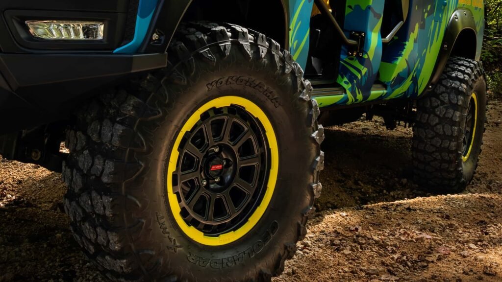 وأصبحت فرونتير Rapid Runner تقف على عجلات ضخمة مقاس 37 بوصة مغلفة بإطارات Yokohama Geolandar Mud-Terrain، وهي من فئة الإطارات الطينية عالية الأداء المخصصة للمغامرات القاسية. أما العجلات نفسها فهي من نوع Nismo التجريبي بمقاس 17 بوصة، ما يجعل السيارة تتفوق في القدرة على التسلق والمناورة بين العوائق بمرونة وثبات.
