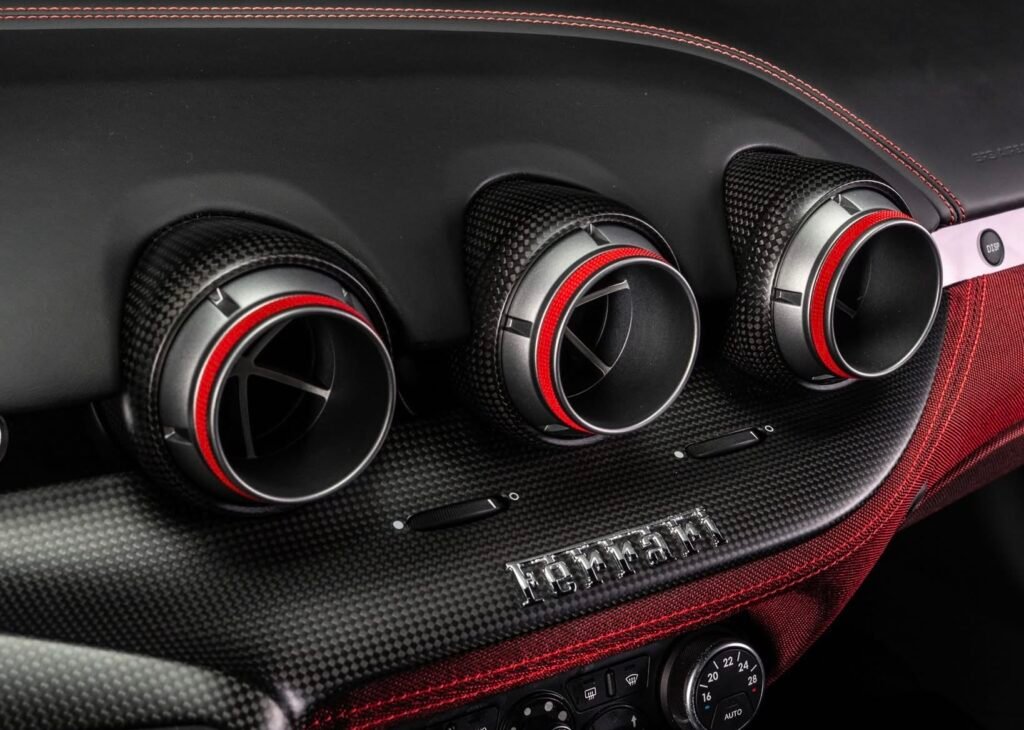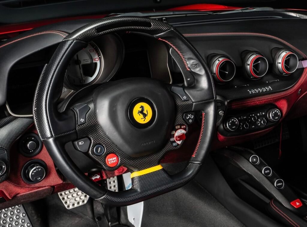 تأتي السيارة مزوّدة بمقاعد سباق من ألياف الكربون كبيرة الحجم، وعتبات أبواب مغطاة بالكربون، وخياطة متباينة مع تطريز شعار Cavallino Rampante الأحمر على مساند الرأس. كما تشمل المواصفات التقنية مرايا إلكترونية متغيرة الانعكاس Electrochromic Mirrors، ونظام تثبيت السرعة Cruise Control، وحوامل أكواب من الكربون، ونظام إضاءة أمامية تكيفي Adaptive Front Lighting System، وكاميرات للمساعدة في الركن، وشاشة مخصصة للراكب الأمامي Passenger Display، ونوافذ خلفية معزولة، وسقف ومقاعد مكسوة بالجلد، ونظام مراقبة ضغط الإطارات، بالإضافة إلى نظام صوتي فاخر عالي الأدا .