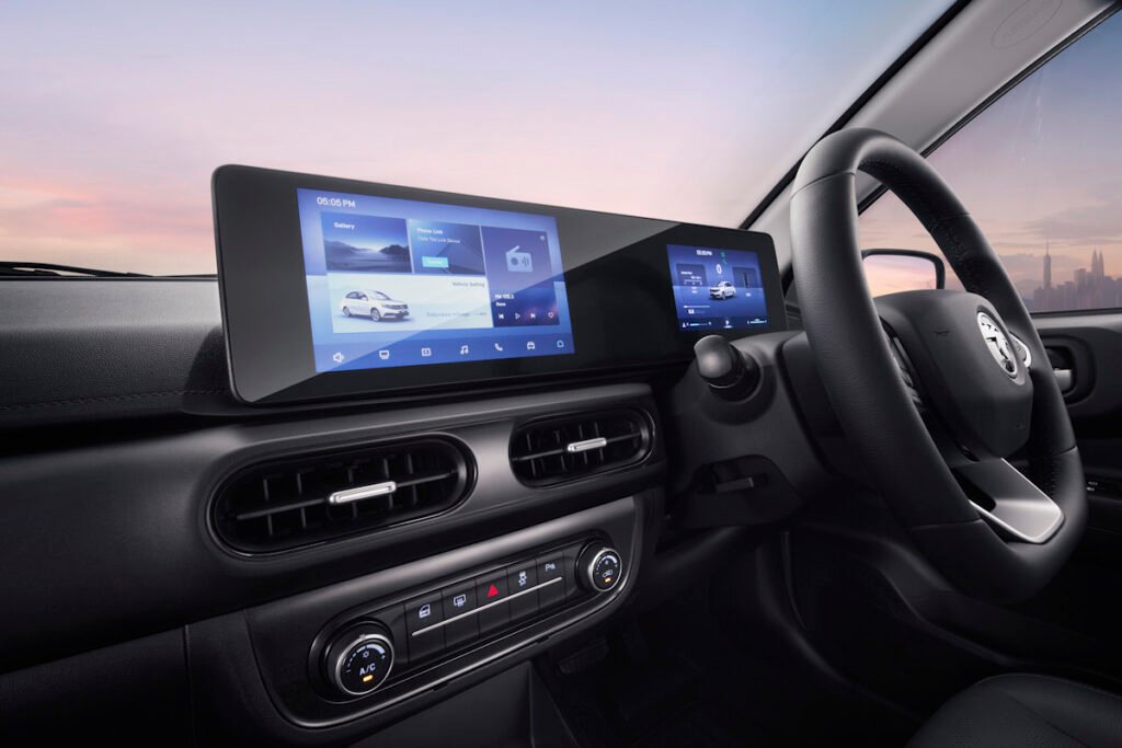 من أبرز التجهيزات التقنية في المقصورة دعم نظام Android Auto وApple CarPlay سواء من خلال الاتصال السلكي أو اللاسلكي، كما تم تجهيز السيارة بشاشة عدادات رقمية مقاس 7 بوصات، إلى جانب شاشة معلومات وترفيه مركزية قياس 9 بوصات .