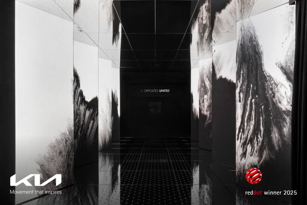 منذ عام 2023، تطورت فلسفة التصميم التي تعتمدها كيا، المعروفة باسم اتحاد الأضداد Opposites United، لتتحول إلى منصة فنية واسعة تتقاطع فيها الأبعاد الثقافية والتقنية من خلال سلسلة معارض عالمية. هذا المعرض تحديدًا جاء نتيجة تعاون واسع بين كيا وعدد كبير من الفنانين العالميين، حيث استلهم المشاركون المفهوم التصميمي الجديد لتقديم أعمال فنية وتجارب تفاعلية تجسّد التوتر الإبداعي بين التناقضات.