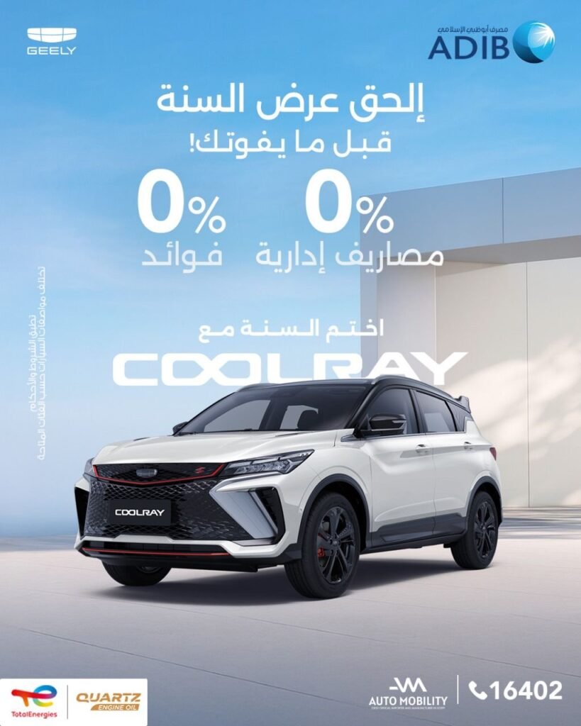 أعلنت أوتوموبيليتي مصر Automobility Egypt، الوكيل الرسمي والمُصنّع الحصري لسيارات جيلي Geely في مصر، عن طرح برنامج تمويلي جديد بالتعاون مع مصرف أبوظبي الإسلامي Abu Dhabi Islamic Bank -ADIB، وذلك بهدف توفير خيارات سداد متعددة لشراء طرازات جيلي المختلفة وفق ضوابط متوافقة مع الشريعة الإسلامية.