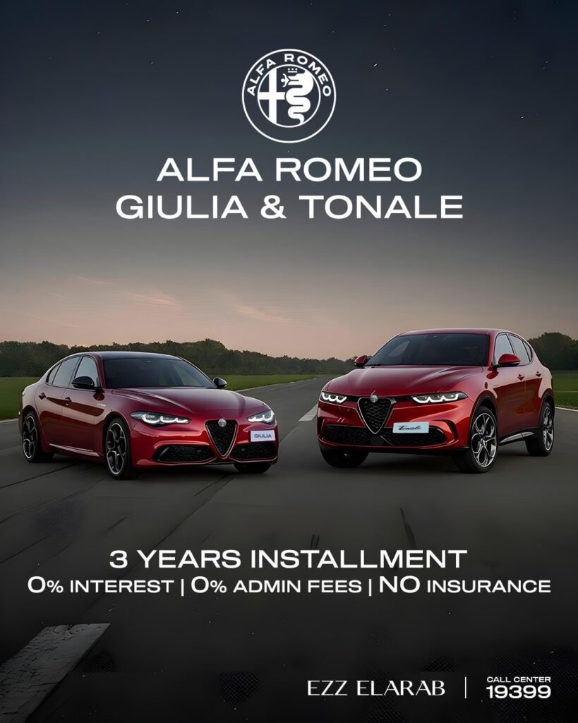أعلن وكيل علامة ألفا روميو Alfa Romeo و دي إس DS Automobiles في مصر، شركة عز العرب للسيارات Ezz Elarab, عن تقديم باقة من عروض التقسيط غير على مجموعة من أحدث طرازات العلامتين في السوق المحلي، وهي العروض التي تنطبق على جميع السيارات دون استثناء. ويأتي هذا العرض لتوفير حلول مرنة للعملاء الباحثين عن امتلاك سيارات بتقسيط يمتد حتى خمس سنوات.