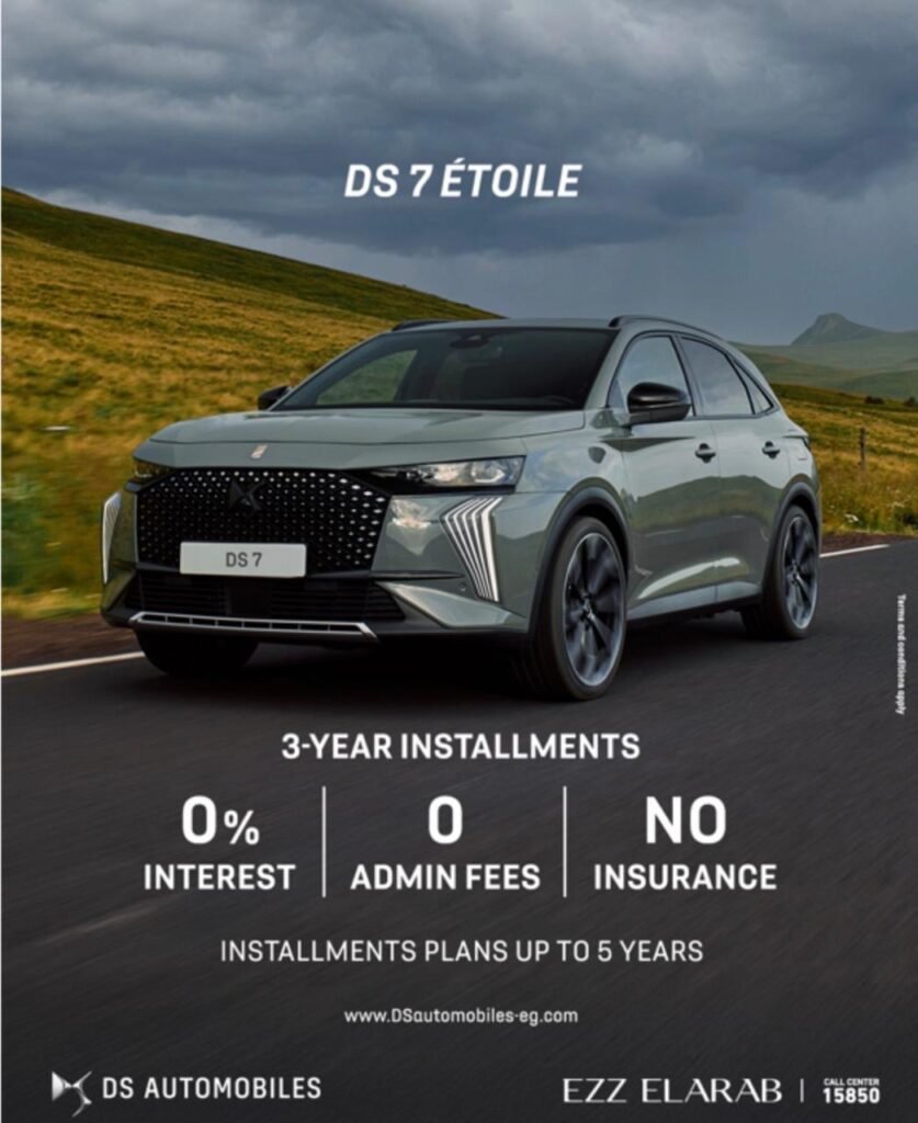 وطبق العرض أيضاً على سيارة DS المتوفرة DS7 ÉTOILE التي قدمت مقابل 2 مليون و 675 ألف جنيه.