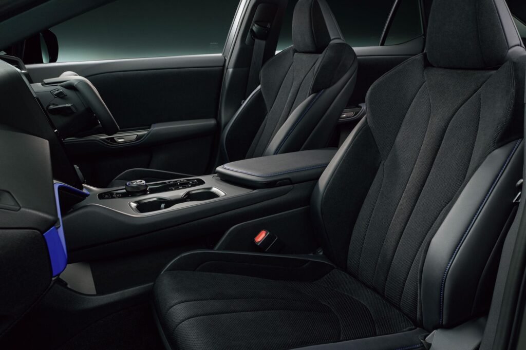 داخل المقصورة، تستمر اللمسات الزرقاء، في حين تعتمد السيارة على عجلة قيادة بتصميم Yoke، مخصصة لنظام التوجيه الإلكتروني الكامل Drive-by-Wire، وهو نظام يلغي الاتصال الميكانيكي التقليدي بين عجلة القيادة والعجلات.
