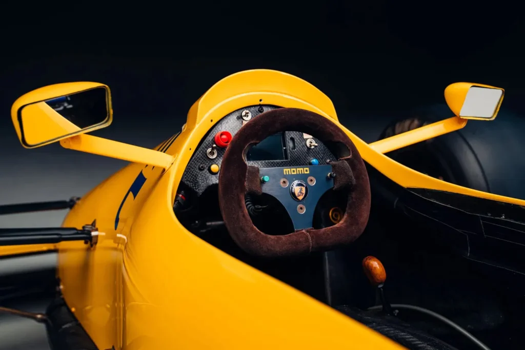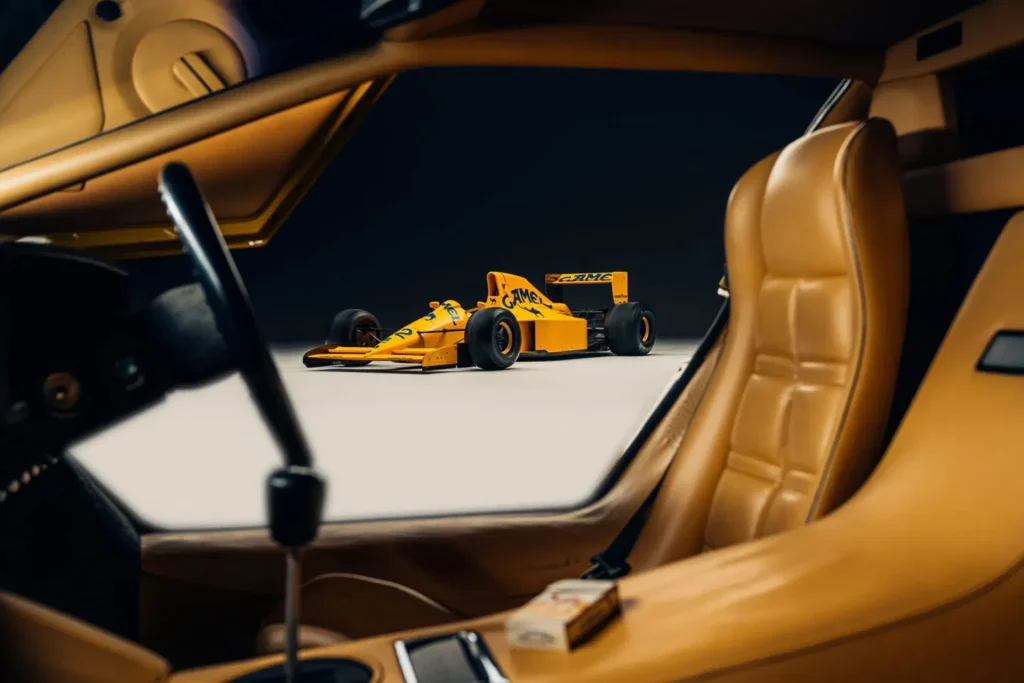 السيارة المعروضة للبيع تعود إلى عام 1990، وتحمل اسم لوتس Lotus Type 102، وقد ظهرت بألوان فريق لوتس الصفراء مع رسومات Camel الزرقاء المميزة. ولا تبرز أهمية هذه السيارة من تصميمها فقط، بل من كونها السيارة الوحيدة في تاريخ فريق لوتس التي اعتمدت على محرك V12 من إنتاج لامبورجيني Lamborghini.
