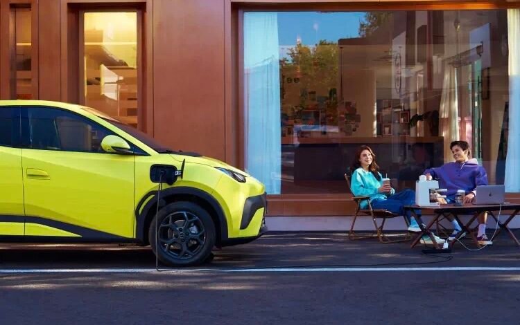 تحمل فتحات التهوية داخل المقصورة تصميمًا بخطوط حادة ولمسات مستوحاة من أسلوب السايبر بانك، ما يمنح المقصورة طابعًا يتماشى مع شخصية السيارة الكهربائية. وتكمل هذه اللمسات الطابع الشبابي للسيارة.