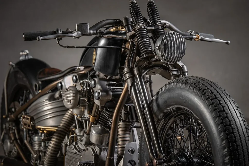 تم تزويد الدراجة بنظام تعليق أمامي من نوع Springer مطابق للمواصفات الأصلية، وهو الخيار الأنسب للحفاظ على الهوية التاريخية للدراجة. كما جرى تركيب مقود من أسلوب Speedster مقلوب، ومصباح أمامي بتصميم Scalloped، إضافة إلى مكابح قرصية من شركة Performance Machine لتعزيز الأداء العملي على الطرق الحديثة دون الإخلال بالشكل الكلاسيكي.
