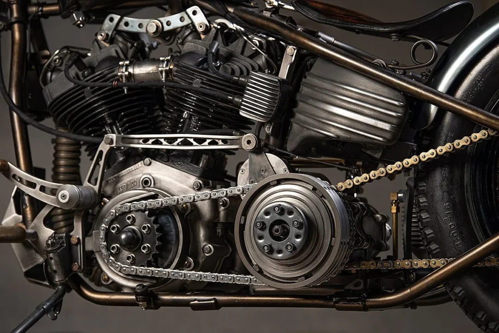 ويعتمد المحرك على نظام إشعال إلكتروني Super Stock من S&S، إضافة إلى مكربن Super E مع مشتت حراري بتصميم مميز، بينما تنتقل القوة إلى العجلة الخلفية عبر ناقل حركة Baker رباعي السرعات مع سلسلة مكشوفة.