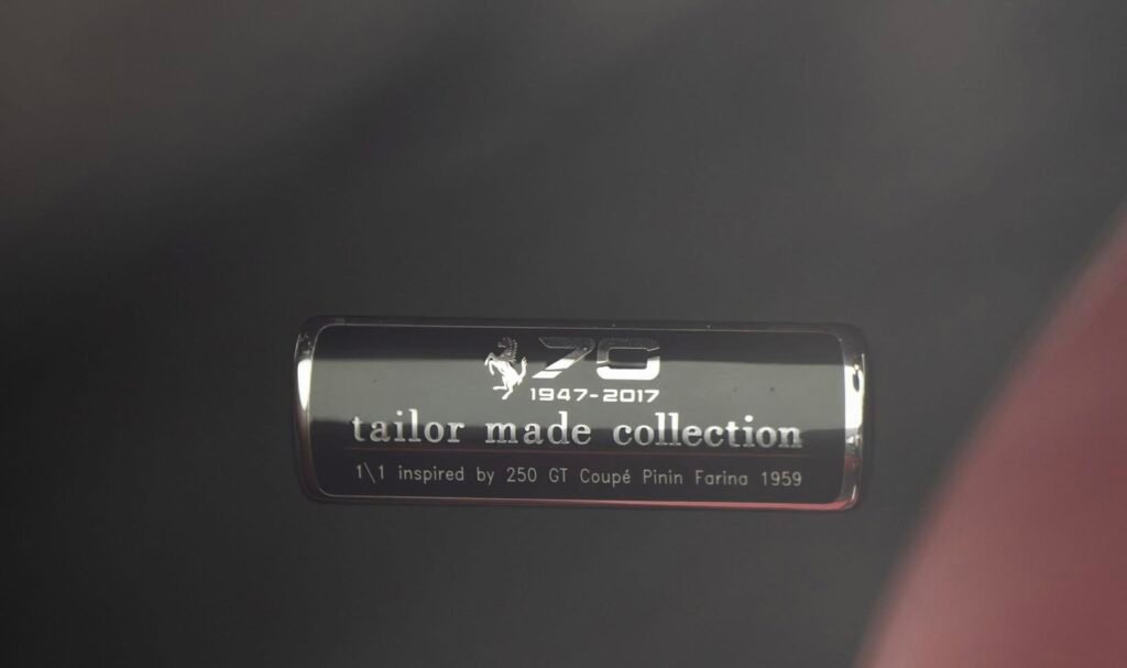 استُلهم التصميم الخارجي لهذه النسخة الخاصة من طراز Ferrari 250 GT Coupe Pinin Farina موديل عام 1959، أحد أهم طرازات فيراري Ferrari الكلاسيكية. وقد عُرفت تلك السيارة التاريخية بطلائها المميز بلون Rosso Bordeaux مع سقف Grigio Conchiglia، وهو ما أعاد قسم Tailor Made تفسيره بشكل عصري في هذه النسخة الاحتفالية.