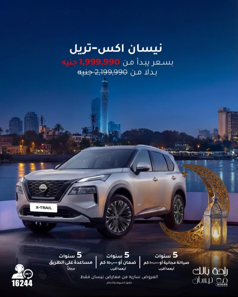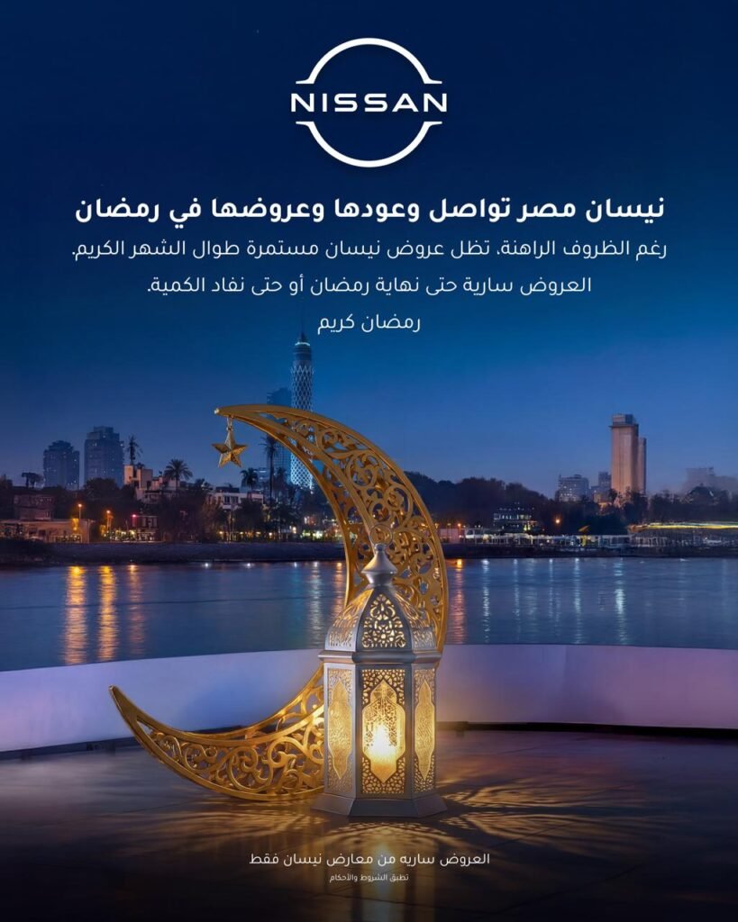 أعلنت نيسان مصر Nissan Egypt عن استمرار عروضها الخاصة بشهر رمضان المبارك، مؤكدة التزامها بتقديم تسهيلات وعروض سعرية مميزة للعملاء رغم الظروف الاقتصادية الراهنة. وتشمل الحملة عددًا كبيرًا من طرازات العلامة اليابانية المطروحة في السوق المصري، مع تخفيضات متفاوتة على السيارات السيدان والكروس أوفر والـSUV وكذلك سيارات البيك أب.
