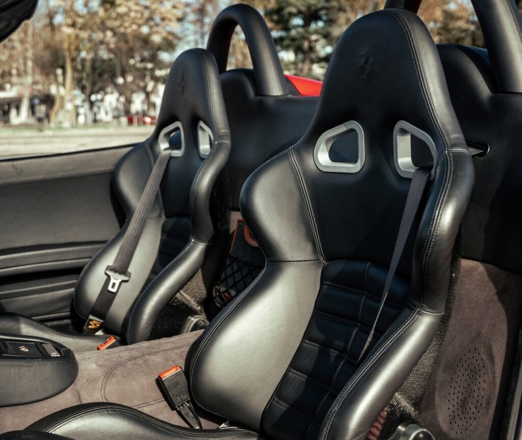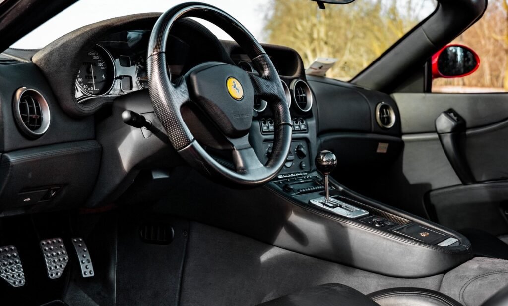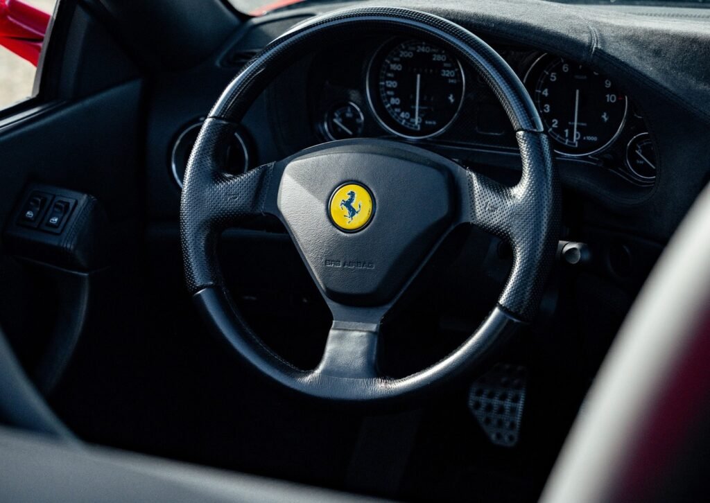 تأتي السيارة باللون الخارجي Rosso Corsa مع مقصورة داخلية باللون الأسود Nero، مع كسوة جلدية وسجاد متناسق. كما لا يتجاوز عداد المسافات 7188 كيلومترًا وقت إدراجها في المزاد، ما يعكس محدودية الاستخدام على مدار أكثر من عقدين.