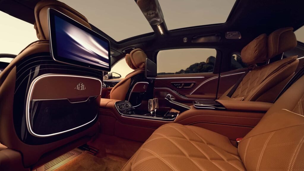 كما تتضمن التجهيزات أبواب خلفية تعمل كهربائيًا، وأكواب مخصصة للمشروبات، ونظام إضاءة محيطية يضم 199 وحدة LED مع 64 لونًا قابلًا للاختيار، إلى جانب مساحة خلفية واسعة بفضل قاعدة العجلات الممتدة مقارنة بالإصدار القياسي.