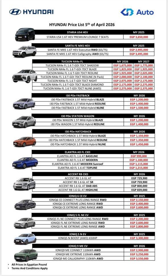 وتعكس القائمة الجديدة استمرار التحركات السعرية داخل سوق السيارات المحلي، في ظل التغيرات المستمرة في تكاليف الاستيراد والشحن وأسعار الصرف، وهو ما انعكس بشكل مباشر على أسعار موديلات هيونداي Hyundai المختلفة.