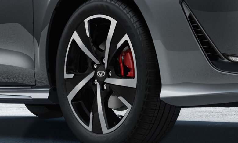 الواجهة الخارجية للسيارة تعكس هذا التوجه بوضوح، مع خطوط انسيابية حادة تمنحها مظهرًا أكثر ديناميكية مقارنة بعدد من المنافسين في نفس الفئة. كما تبرز العجلات الرياضية قياس 17 بوصة ذات التصميم الخماسي الأذرع، إلى جانب ملاقط الفرامل الحمراء Red Brake Calipers التي تضيف لمسة رياضية. ويكتمل هذا الطابع من خلال المصابيح النهارية LED ومخارج العادم الثنائية.