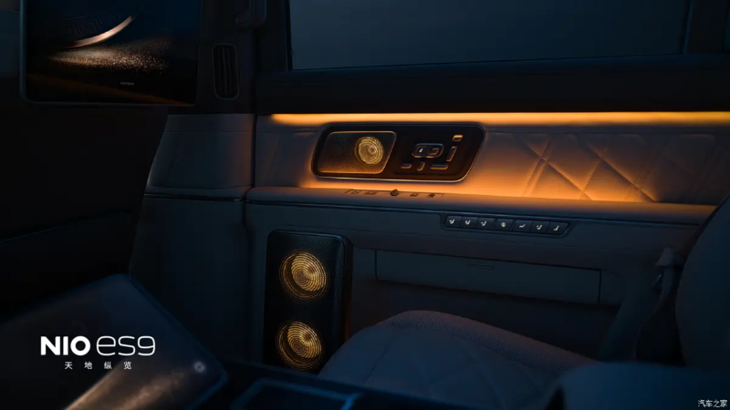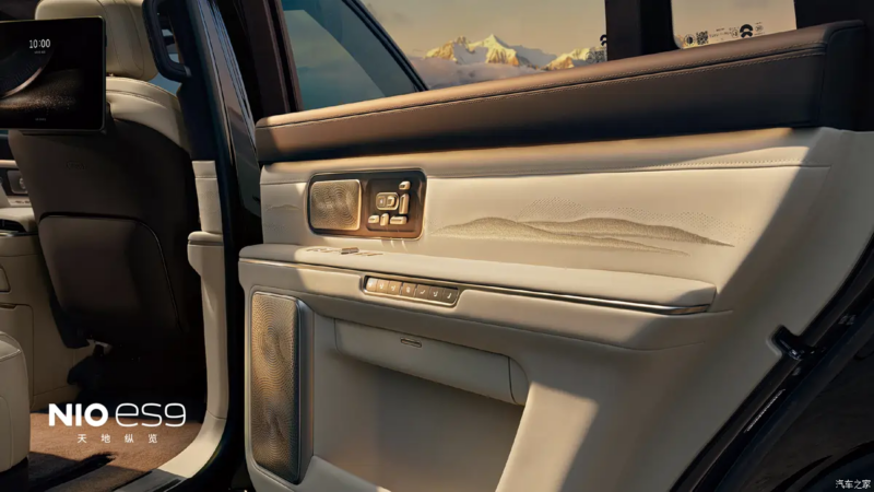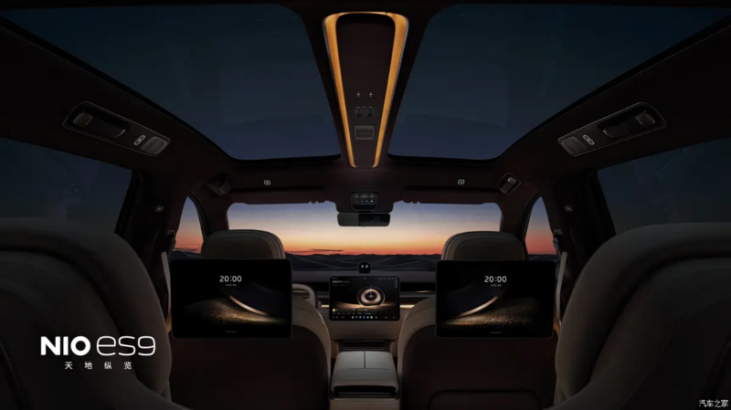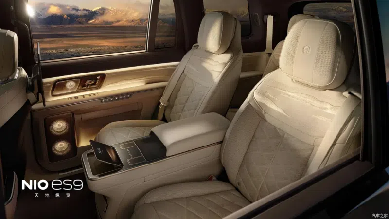 وفي الخلف، تعتمد السيارة تصميم “Sky Island” و”Executive Bridge” المستوحى من طراز نيو Nio ET9، مع شاشتين خلفيتين بقياس 14.5 بوصة لكل منهما، بالإضافة إلى شاشة تحكم مركزية بقياس 8 بوصات.
